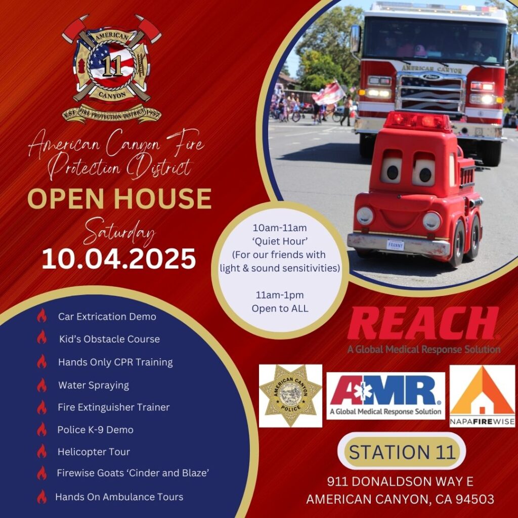 Join the American Canyon Fire Protection District for their Annual Fire Prevention Open House — a family-friendly event designed to bring the community together around fire safety and prevention.